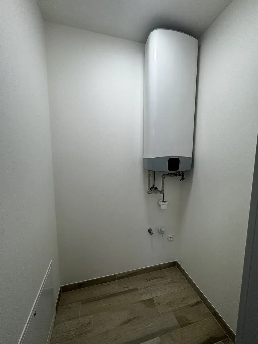 Interiér bytu je řešen velmi moderně, prakticky a nabízí komfortní bydlení. Kuchyňský kout je vybaven myčkou, digestoří indukčním vařičem a troubou. V koupelně s velmi prostorným sprchovým koutem je i toaleta. Světlá ložnice má okno dovnitř areálu nikoliv do ulice a zaručuje tedy klidný odpočinek. V bytě je i komora, kde je kotel, ale slouží také jako úložný prostor navíc, kterého není nikdy dost. O teplo domova se stará podlahové vytápění napojené na plynový kotel.