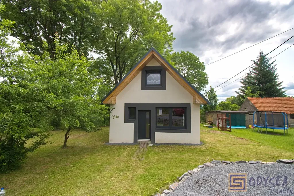 Exklusivně nabízíme k prodeji dům v klidné části obce Bílov, s pozemkem 413 m2. Dům o zastavěné ploše 34 m2 má dispozici 2+kk, v přízemí je obývací pokoj s kuchyňským koutem, ložnice a koupelna s toaletou, v prvním patře se nachází jedna podkrovní místnost. Jedná se montovanou sendvičovou dřevostavbu, která je zateplená polystyrenem 20 cm, sedlová střecha je pokrytá plechovou střešní krytinou. Vytápění zajišťuje klimatizační jednotka, ohřev teplé vody elektrický bojler, odpady jsou svedeny do obecní kanalizace. K domu náleží zahrada osázená ovocnými stromy, součástí jsou dvě parkovací stání pro automobily. V obci je mateřská škola, COOP, nové sportovní centrum, kde je k dispozici víceúčelová sportovní hala, tenisový kurt, dětské hřiště, bowling, fotbalové hřiště. Bílov se nachází nedaleko Bílovce, po dálnici pouhých 25 min. od centra Ostravy. Pokud Vás tato nabídka zaujala, rádi Vás přivítáme na nezávazné prohlídce.