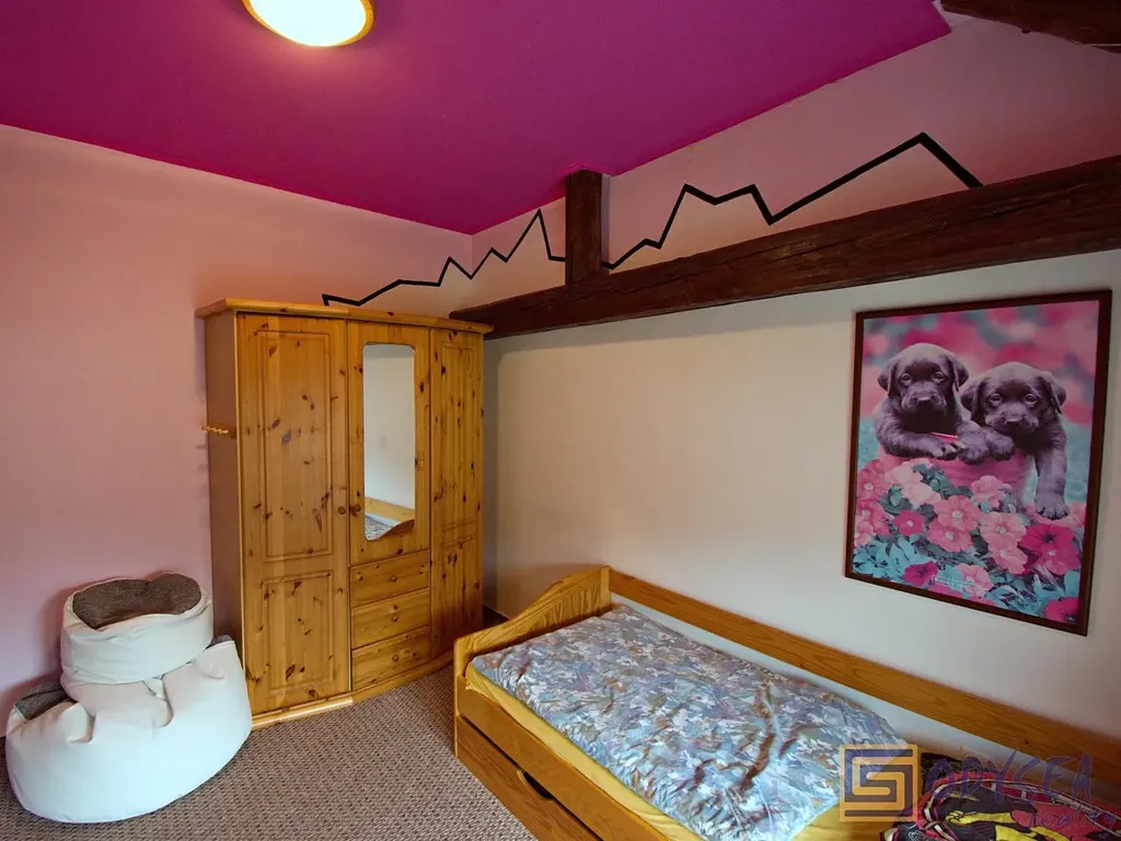 V horním podlaží je k dispozici opět zajímavě řešený obytný prostor - vstupní hala plynule přechází ve velký obývací pokoj se stylovým krbem, z tohoto pokoje vedou dveře do dalších čtyřech neprůchozích pokojů (viz fotogalerie). Součástí horního podlaží je samozřejmě taky koupelna s toaletou.
