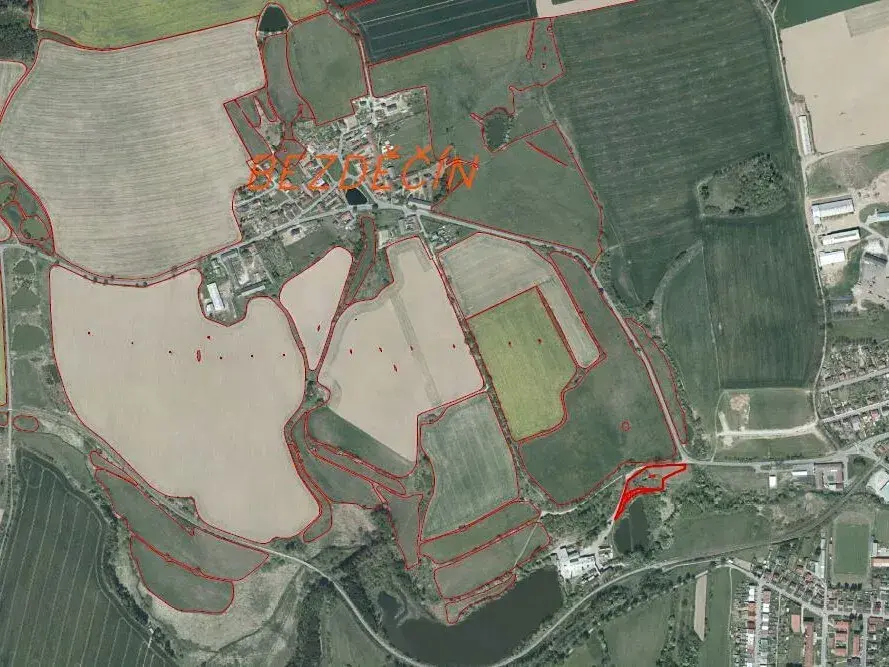 Předmětem dražby jsou pozemky o celkové výměře 4 944 m2 ve vesničce Bezděčín, část městyse
