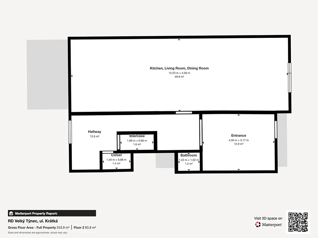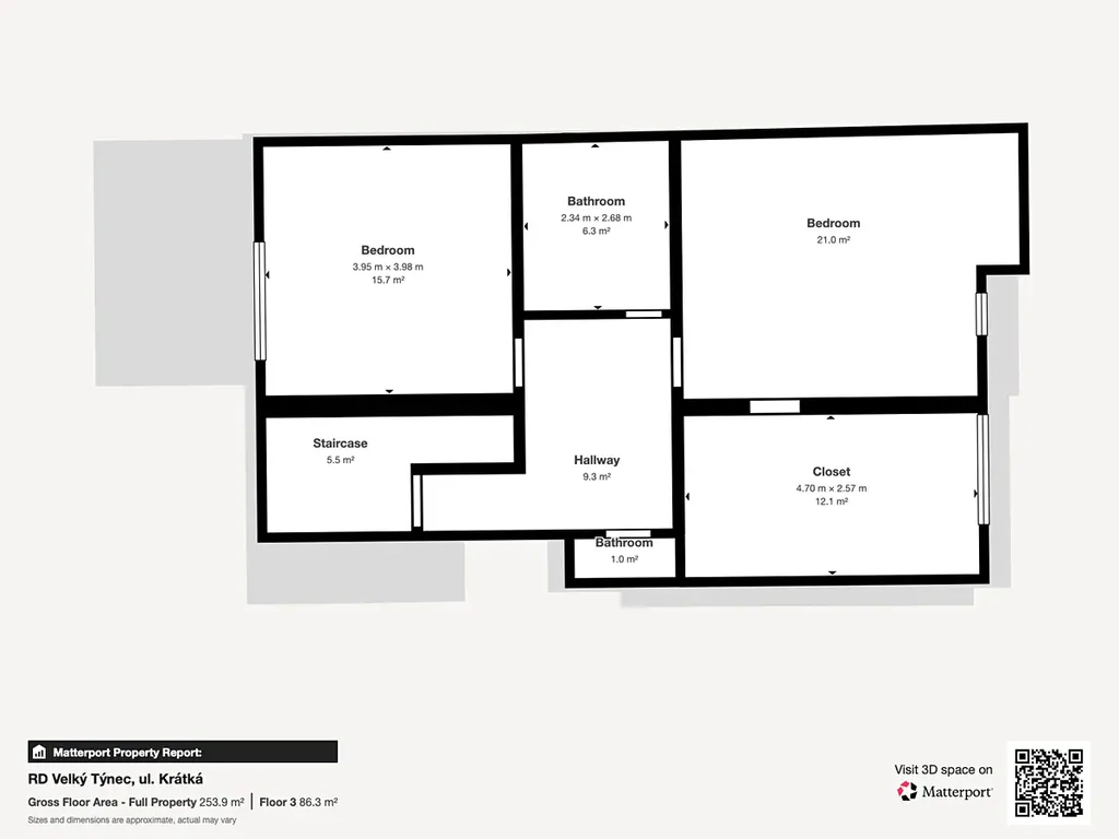 - 3. NP má totožný půdorys jako nižší patra, má nové instalace i omítky a je připravené na položení podlah, osazení dveří a dokončení dalšího obytného podlaží dle představ nového majitele. Nad ním je ještě půda.