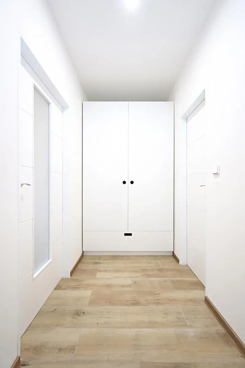 Zcela nová rekonstrukce bytu 5. NP v klidné ulici kousek od parku Petřín. Okna východním směrem, opatřena vnějšími elektrickými roletami.