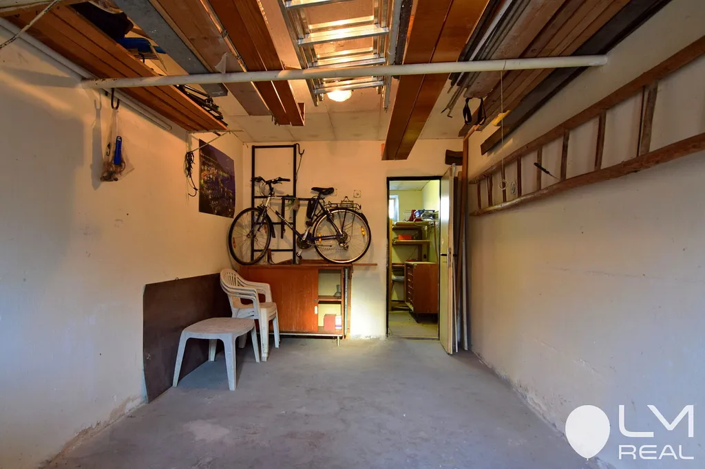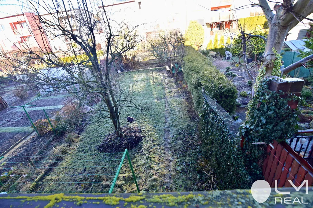 Je podsklepený, s garáží i půdou a parkovacím místem před domem, má zahradu se vzrostlými ovocnými stromy, na které můžete posedět.