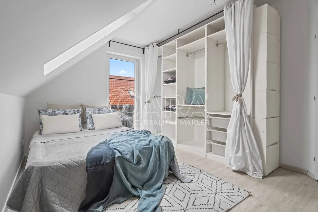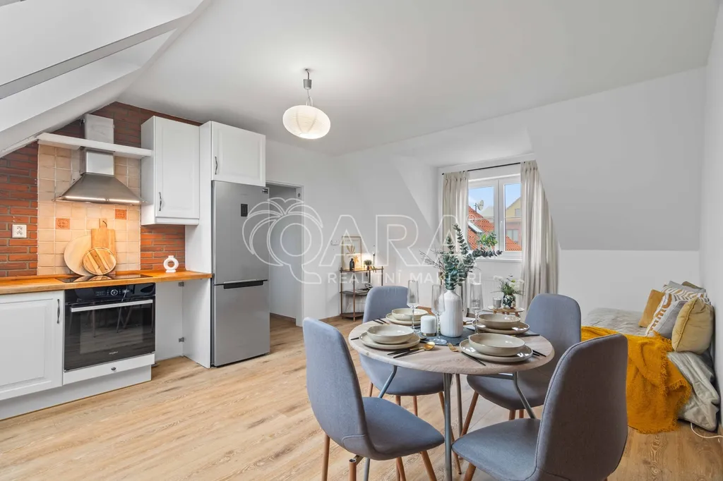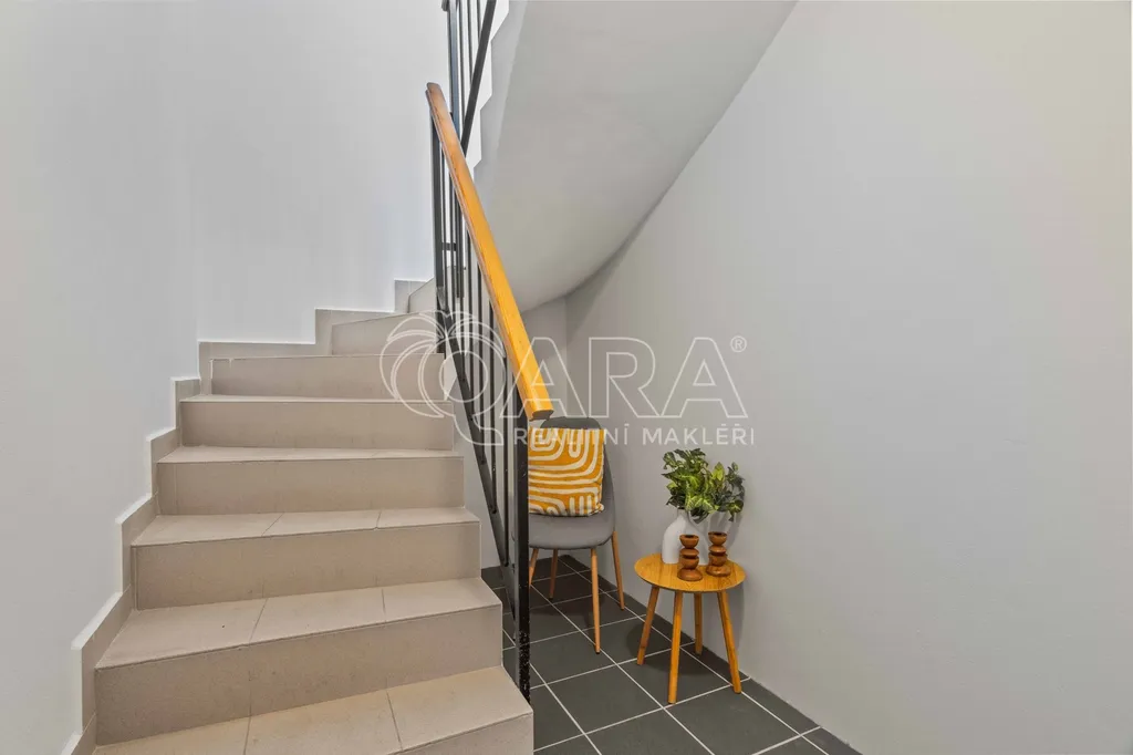 V Javorové ulici v Holubicích na Praze-západ čeká velmi příjemný dvoupodlažní byt o dispozici 3+KK s podlahovou plochou 83 m² a balkonem o velikosti 5 m².