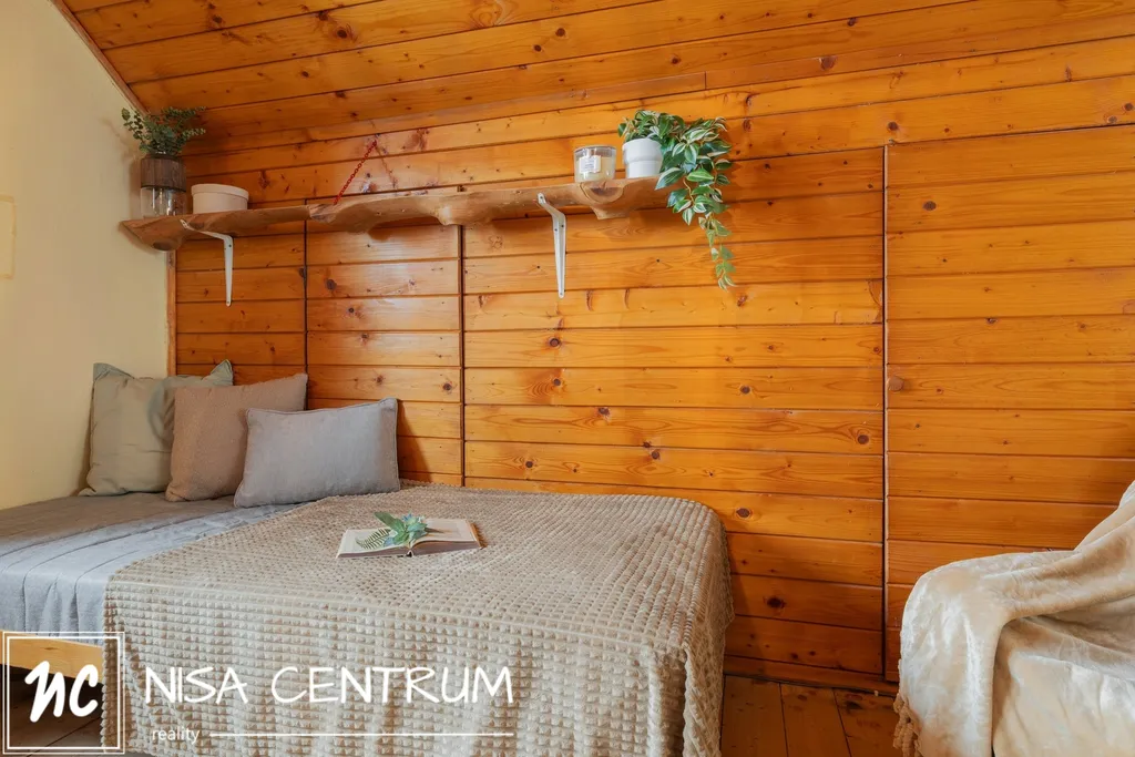 Na pozemku o velikosti 1209 m² se nachází vzrostlé stromy a druhá, menší chatka. Jedná se proto o perfektní možnost investice, když první chatu můžete předělat na bydlení a druhou pronajímat za účelem krátkodobého pronájmu.