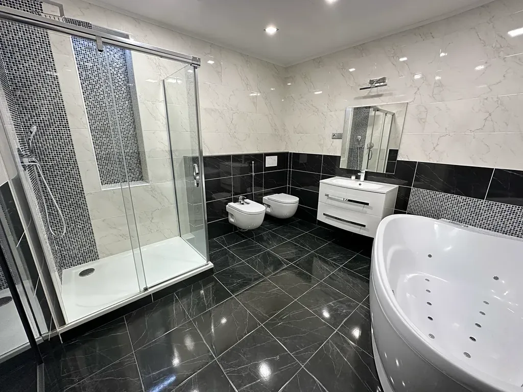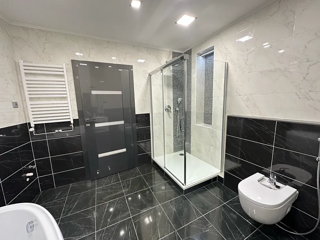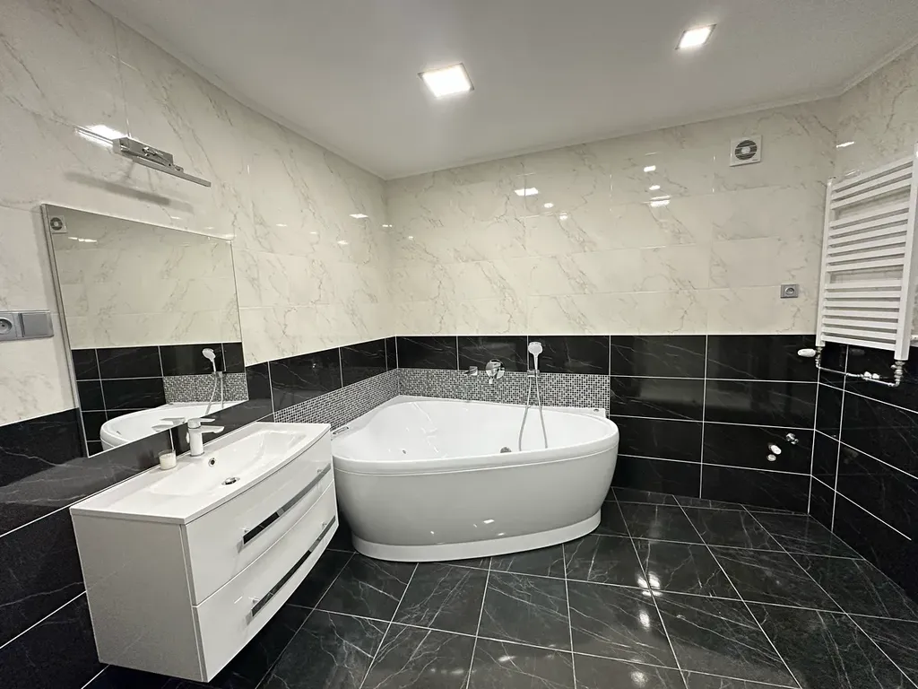 V bytě je technická místnost vybavená novým plynovým kotlem a 2 koupelny s WC a výřivou vanou s hydromasáží.