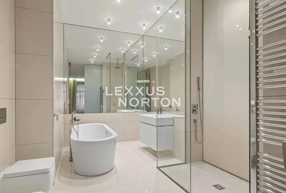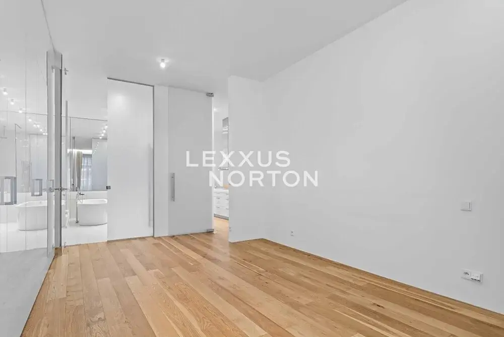 V bytě se nacházejí dvě koupelny – jedna s vanou a toaletou, druhá se sprchovým koutem a toaletou. Moderní kuchyňský kout je plně vybaven sklokeramickou varnou deskou, troubou, lednicí s mrazákem a myčkou nádobí. Součástí vybavení je také pračka a sušička. Byt nabízí vestavěné skříně, kvalitní dřevěné podlahy, bezpečnostní vstupní dveře, integrované stropní osvětlení, alarm s možností napojení na PCO a videotelefon. Interiér bytu byl navržen architektonickým studiem Design by Donlic.