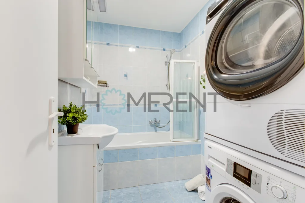 Byt je plně zařízený a připravený k okamžitému nastěhování. Dispozice zahrnuje hlavní ložnici, druhý pokoj vhodný jako dětský pokoj nebo pracovna, obývací pokoj s pohodlnou sedačkou, dostatkem úložných prostor a velkými okny se vstupem na lodžii. Moderní kuchyně je plně vybavená spotřebiči a jídelním stolem. Koupelna nabízí vanu, pračku i sušičku, toaleta je oddělená. Napříč bytem je velké množství praktických úložných prostor.