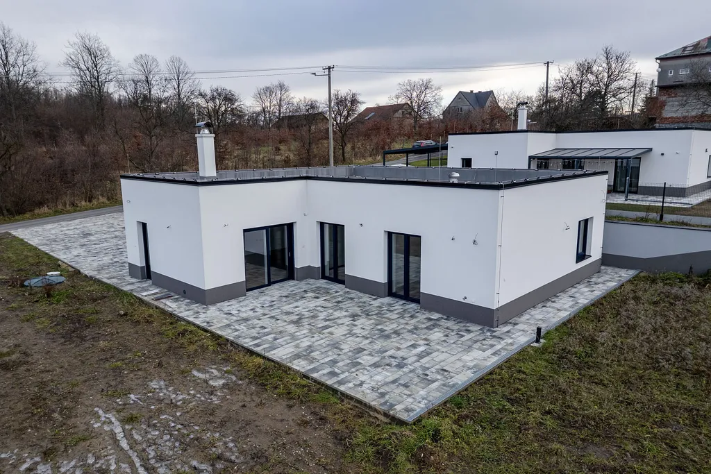 Dům byl navržen a realizován s mimořádným důrazem na kvalitu, funkčnost a dlouhodobý komfort. Z obytných pokojů je přímý vstup na velkorysou terasu s výhledem do okolní přírody, která se stane přirozeným prodloužením obytného prostoru.