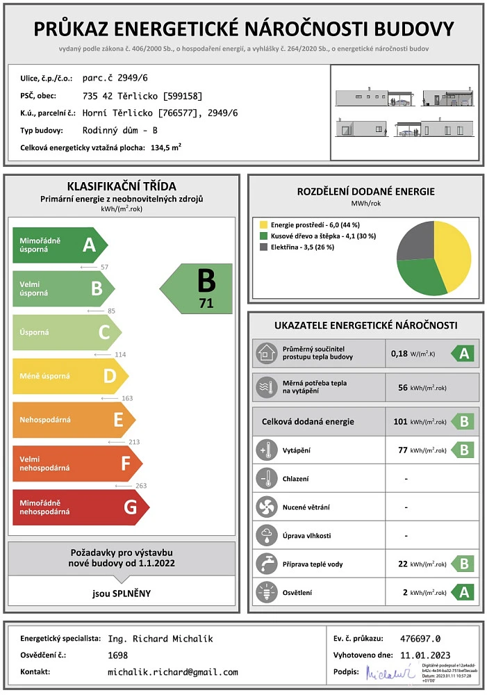 | Třída energetické náročnosti | B - Velmi úsporná |