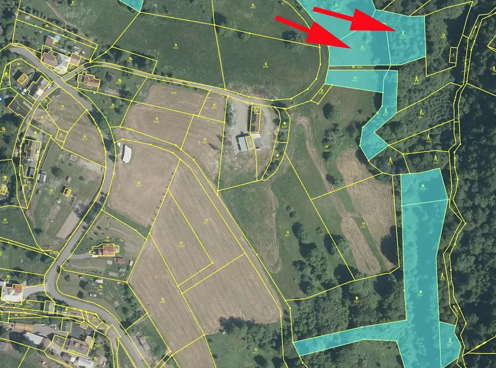 Pozemek přímo přiléhá k obecní cestě. Les možno případně prodat samostatně.