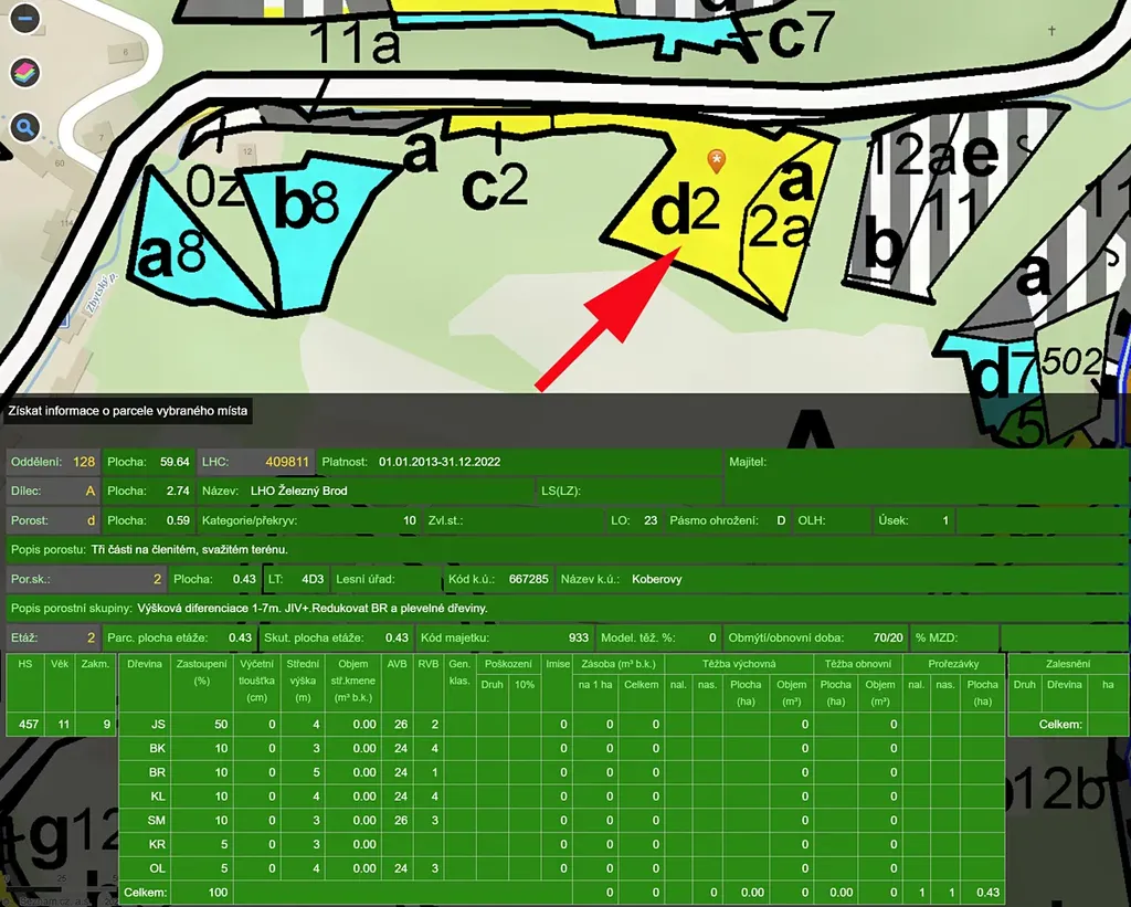 Prodáme pozemek, les s porostem stromů v k.ú. Koberovy, parc.č. 4567.