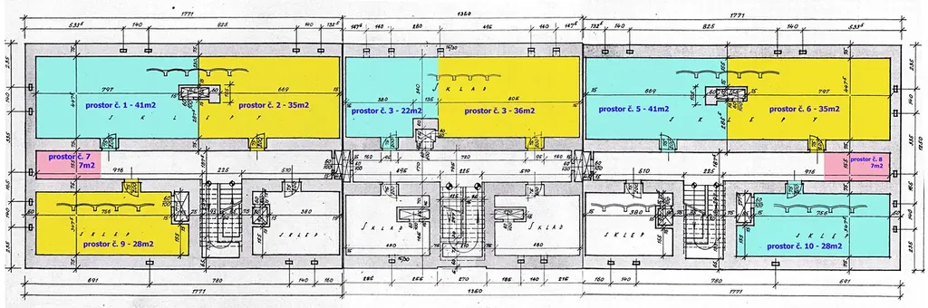 Mimořádná nabídka prostorů v Praze 6, ca 200m vzdušnou čarou od hotelu Internacional, ca 150m od Tram a žst. Nádraží Podbaba. Suché, čisté, skvěle odvětrané prostory v 2.PP bytového cihlového domu. Do prostor vedou 3 schodiště a 2 funkční nákladní výtahy z chodníku (pro břemena max 120x120x150cm, 500kg, ostatní nutno po schodech). Původně určeno pro skladování zeleniny, možno využít jako sklady, archiv apod. Vysoké (ca 3,5m), klenuté stropy. K dispozici až 10 různých skladů 7m2 / 22m2 / 28m2 / 35m2 / 41m2 / 58m2 / 76m2. Celkem až 400m2.