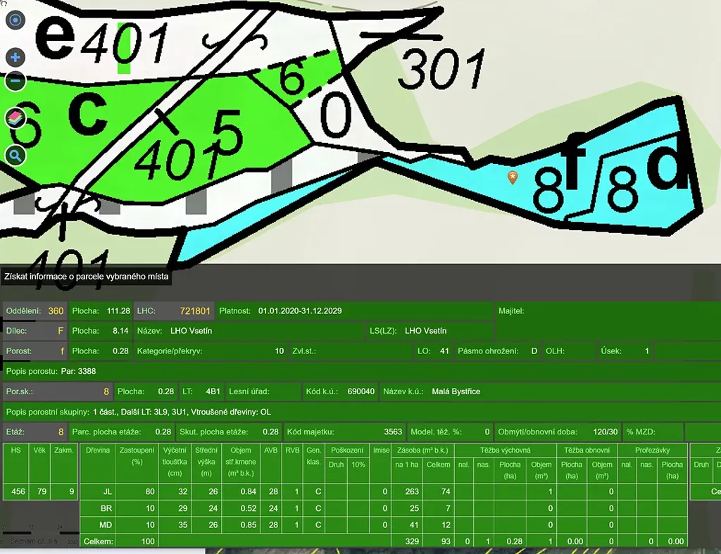 Prodáme pozemek, smíšený les (stáří 81 let) v k.ú. Malá Bystřice, parc.č. 3388, poblíž usedlosti U Řehánků. Viz LHO v obrázkách.