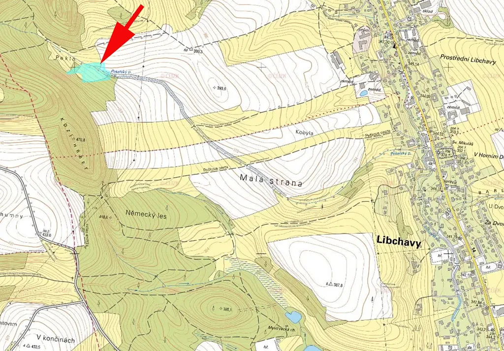 Prodáme pozemek v k.ú. Horní Libchavy, parc.č. 1157/3 a další. Orná půda dobře zavlažovaná, po jižním okraji teče Pekelský potok.