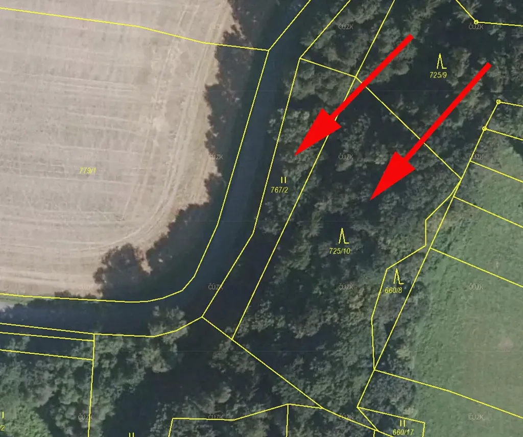 Celková plocha parcely je 3531m2, prodává se pouze náš podíl 1/3, odpovídající ploše 1177m2. Cena je za tento podíl.