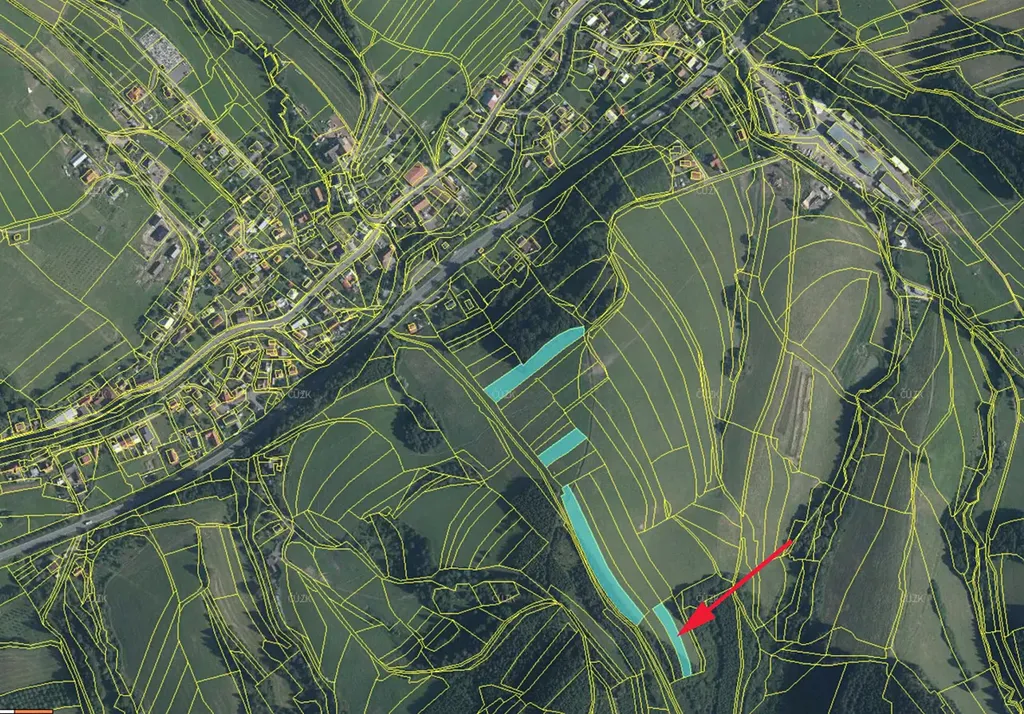 Prodáme pole (orná půda) s částečným porostem stromů (možno vytěžit) v k.ú. Lhota u Vsetína, parc. č. 317