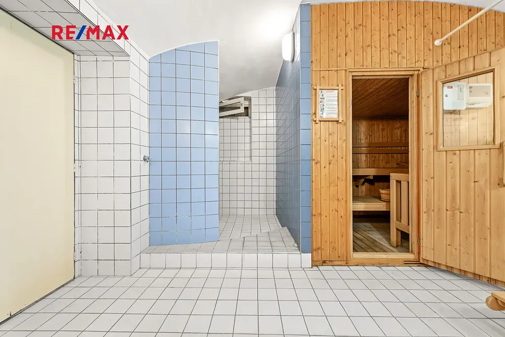 V domě je vlastní sauna a sportovní koutek s odpočinkovou zónou.
