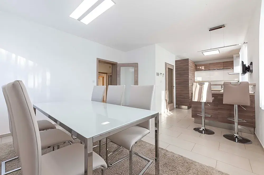 Nabízíme k pronájmu plně klimatizovaný nadstandardně provedený rodinný dům s fotovoltaikou 5+1 situovaný v klidné rezidenční lokalitě města Nymburk.