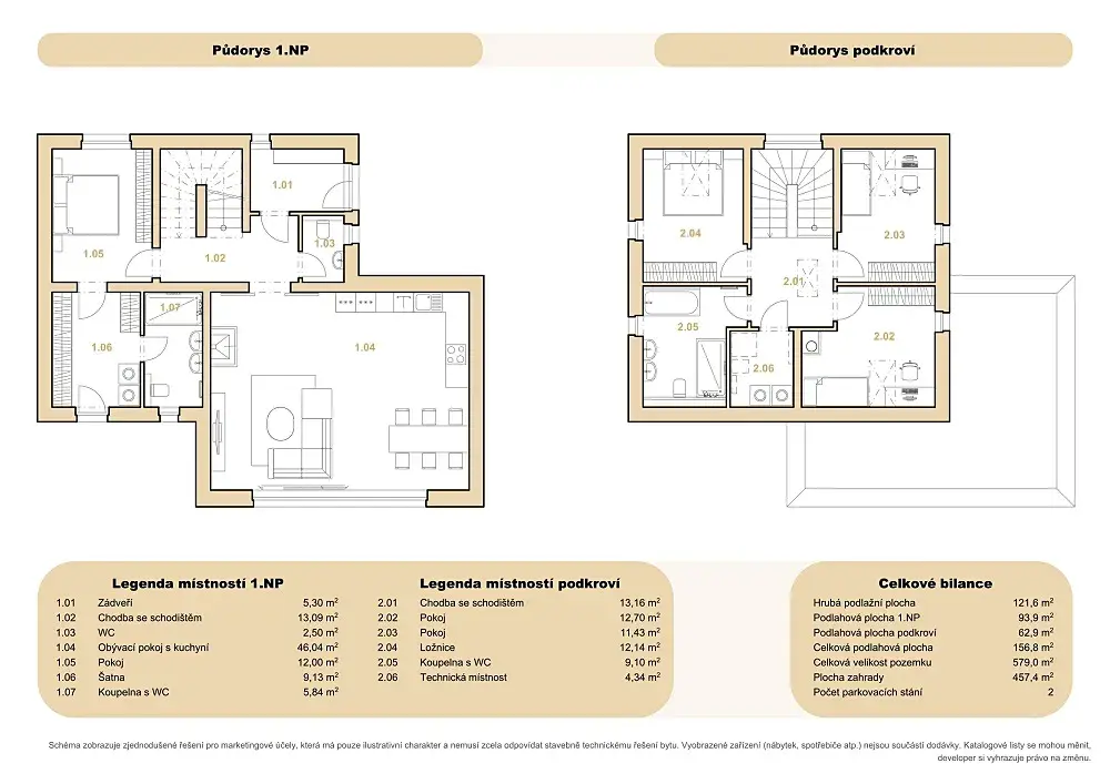 Plocha domu 167,8 m2, zastavěná plocha 122 m2, terasa 26 m2, pozemek 579 m2.