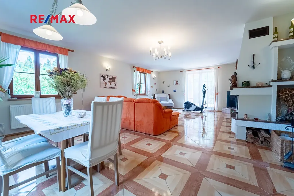 Prostorný rodinný dům 284 m2 podlahové plochy, terasa přes 60 m2 + venkovní kuchyně, prostorná garáž + 2 parkovací místa před domem, sklep přes 120 m2.