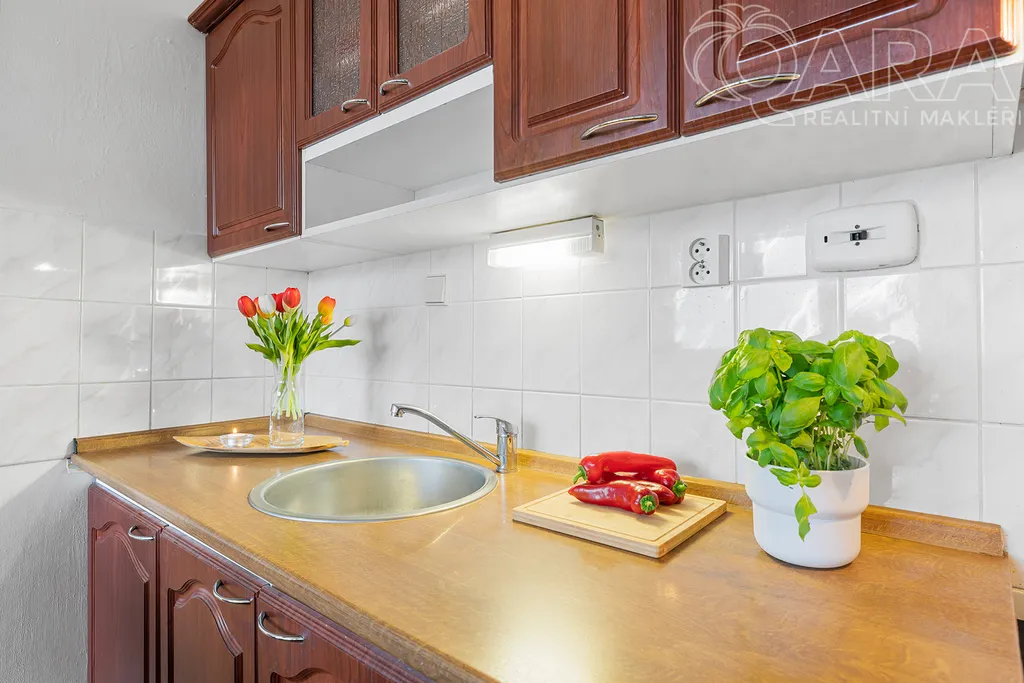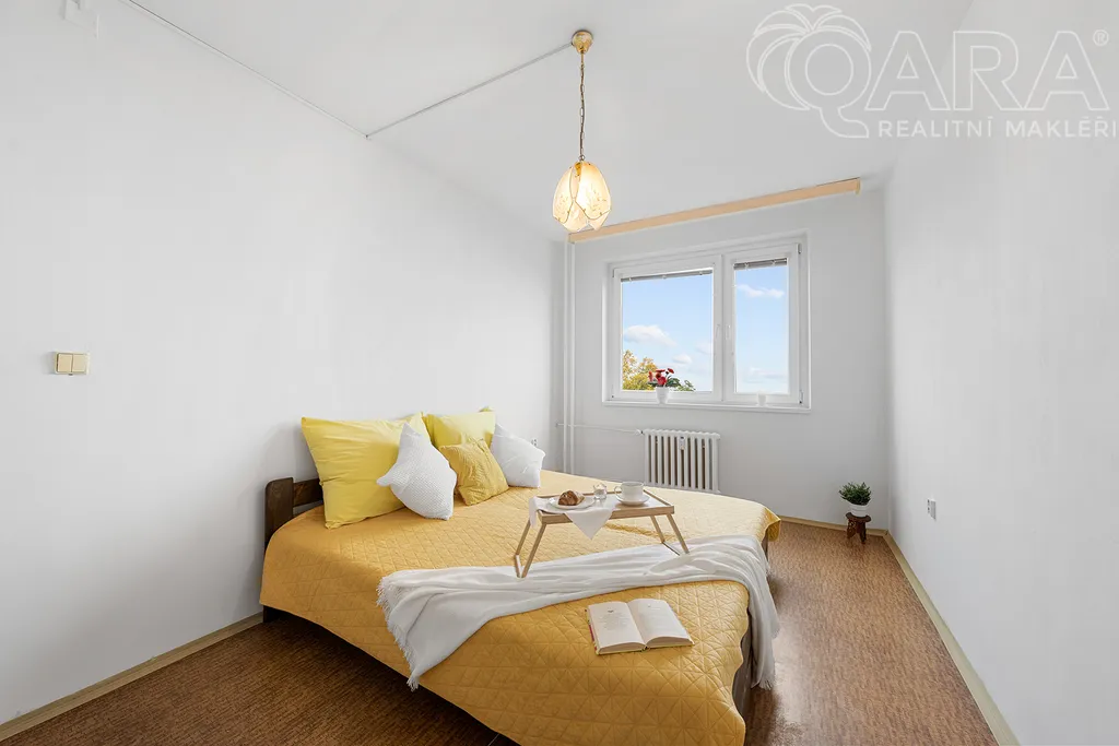 Byt se nachází ve 2. patře udržovaného panelového domu s výtahem a z obou hlavních místností nabízí ničím nerušený výhled do zeleného údolí, který vám zajistí klid a soukromí.