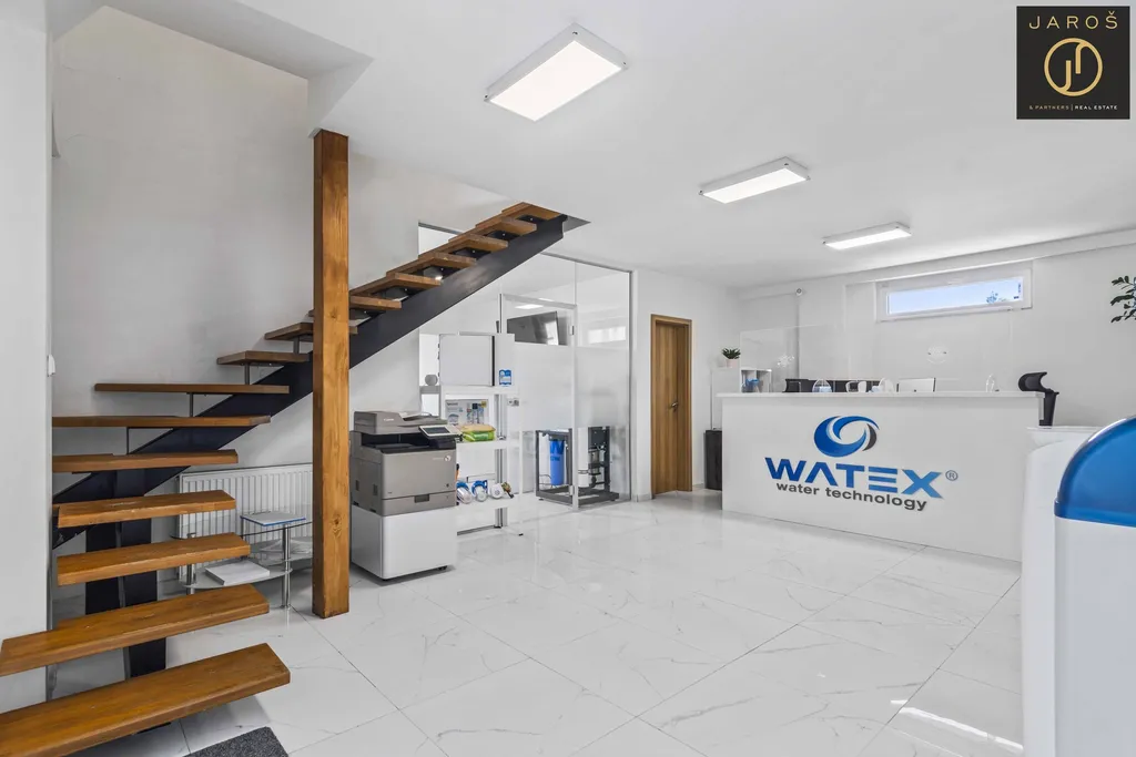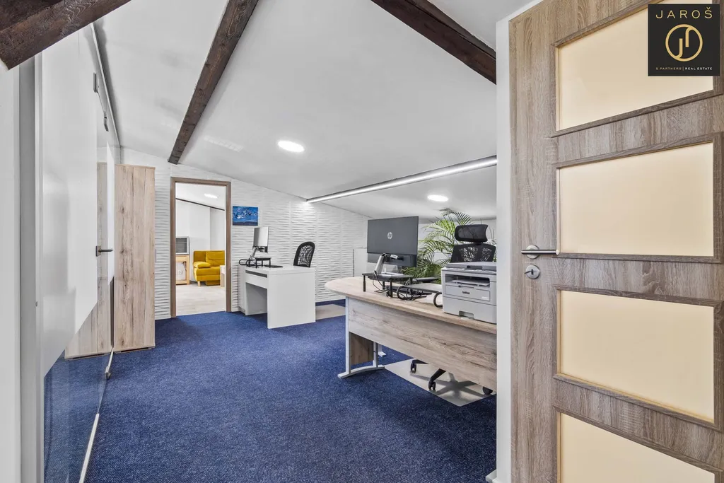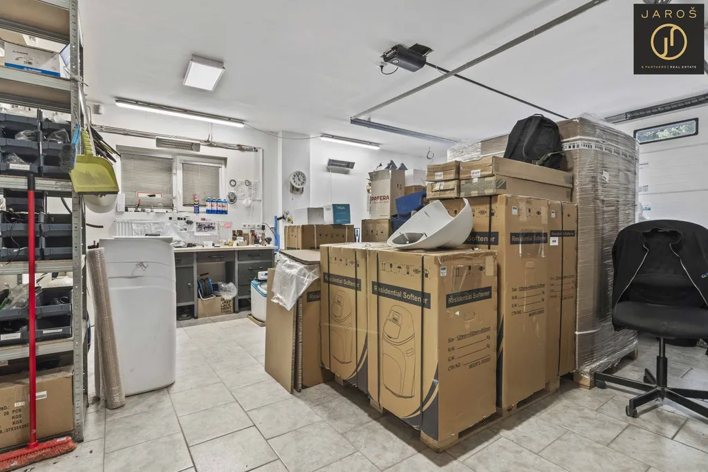 Po vstupu do budovy Vás uvítá příjemná recepce s presetntačním prosotorem (29 m2) na kterou navazuje zasedací místnost 15 m2. V pravo od recepce pak příruční dílna 40 m2, zateplený sklad 55 m2. Skladovací prostory rozšiřuje za budou skrytě umístěný 40" kontejner aktuálně využívaný jako archiv. Umístění kontejneru je zakresleno v přiloženém pasportu stavby. Spodní patro doplňuje kuchyňka a sociální zařízení se sprchou.