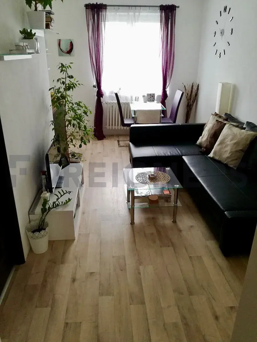 Po vstupu do bytu vás přivítá chodba s vestavěnou skříní nabízející velkorysý úložný prostor. Po levé straně se nachází samostatná toaleta a koupelna se sprchovým koutem. Přímo naproti vstupním dveřím je světlý obývací pokoj s kuchyňským koutem a po pravé straně z obývacího pokoje vstoupíte do útulné, prostorné ložnice.