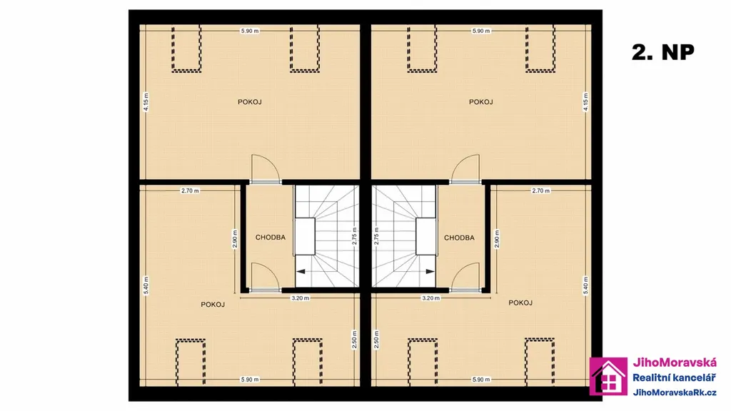 Dispozice domu:1.nadzemní podlaží: předsíň, koupelna (sprchový kout), toaleta, pokoj s kuch. koutem, schodiště a terasa. (oba byty)2.nadzemní podlaží: schodiště, chodba a dva pokoje (oba byty. )Půdorysy obou podlaží naleznete ve fotogalerii.
