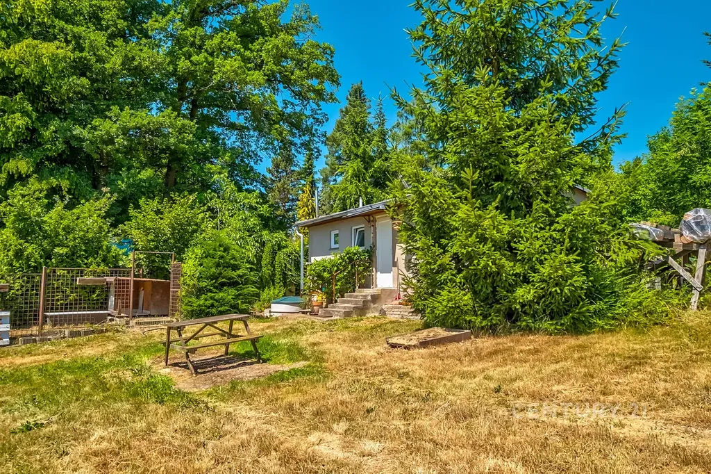 Na pozemku je chata o zastavěné ploše 47m², kterou lze obývat a nebo využít jako zázemí při výstavbě domu.