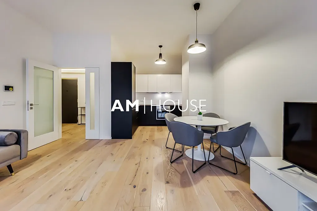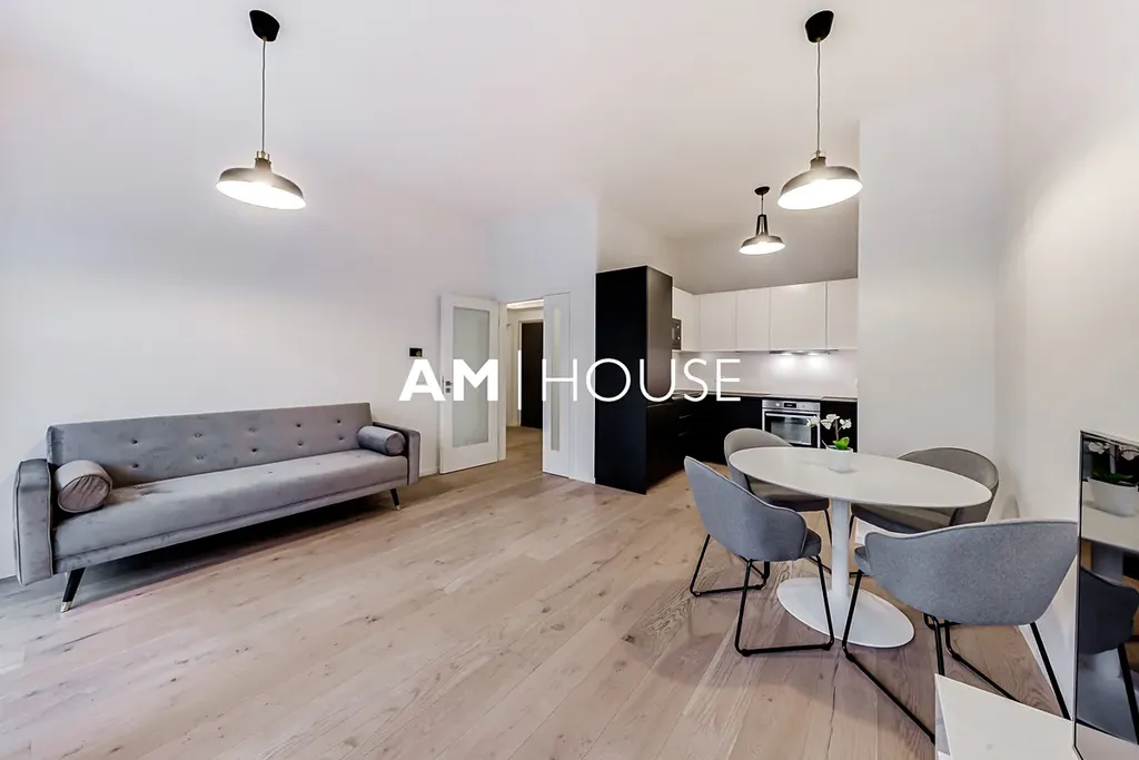 Interiér bytu navržen a realizován renomovaným studiem, vyznačuje se vysokou kvalitou použitých materiálů i vybavení a výborným dispozičním řešením. Kompletně zařízený a stylový byt se nachází v novostavbě. V bytě je kompletně zařízený včetně kuchyňského koutu a spotřebiče.