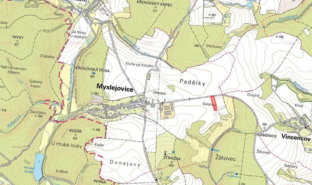 Nenechte si ujít nejnovější nabídky prodeje polí v Myslejovicích.