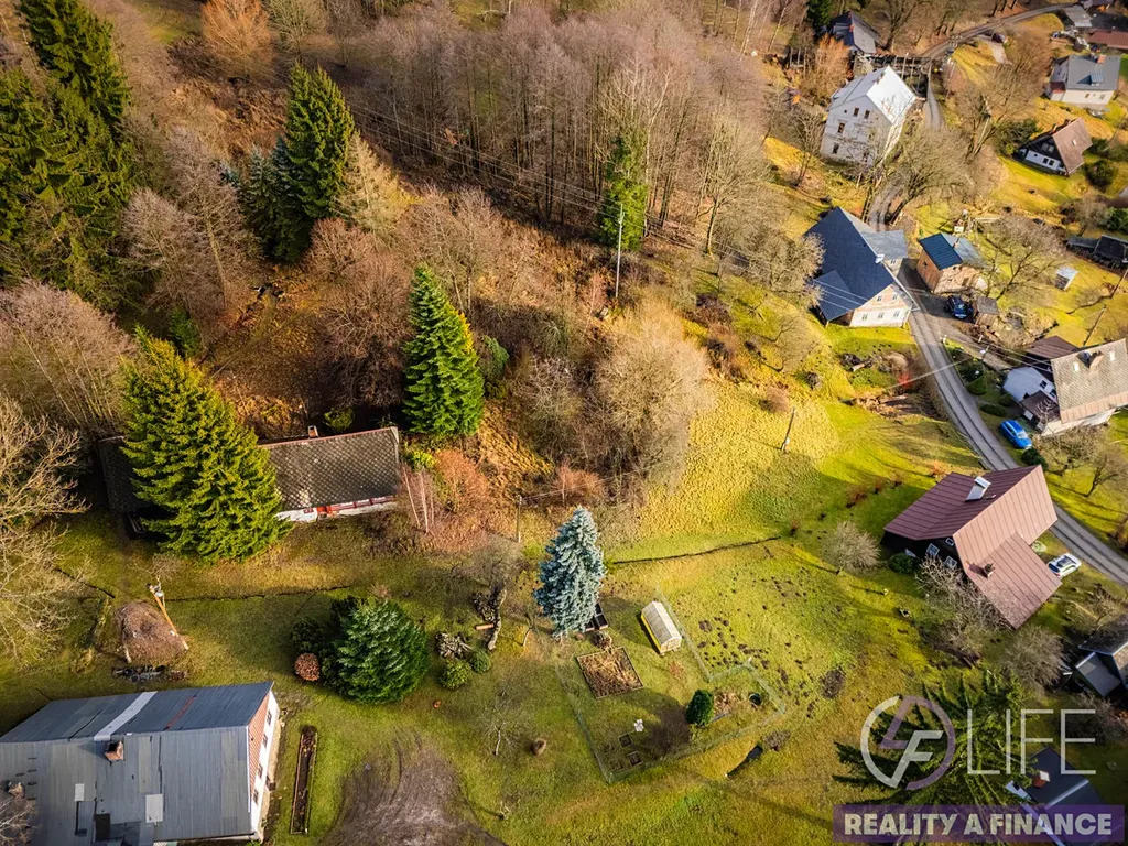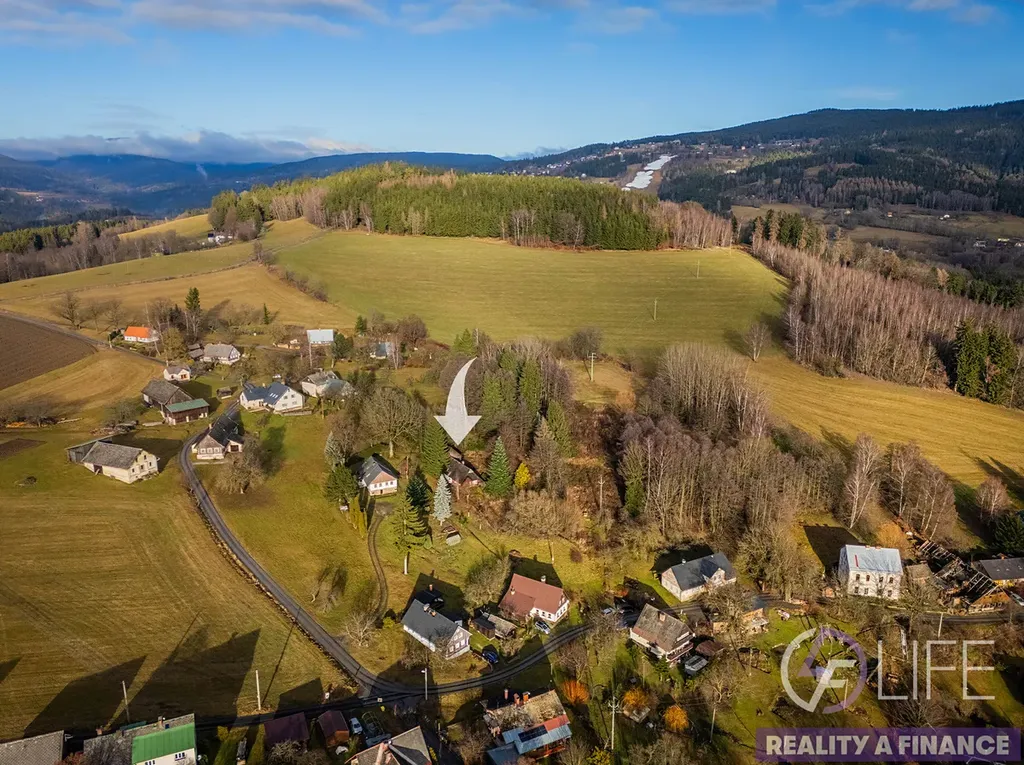 Pozemek nabízí dostatek soukromí, přes jeho část protéká potůček a z místa se otevírají krásné výhledy do okolní krajiny.