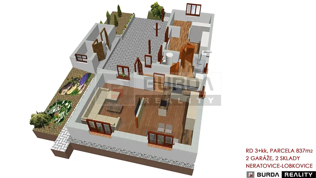 Exkluzivně Vám nabízíme k prodeji rodinný dům 3+kk se zahradou, garáží a dílnou, o celkové ploše parcel 837 m2 v obci Neratovice – Lobkovice.