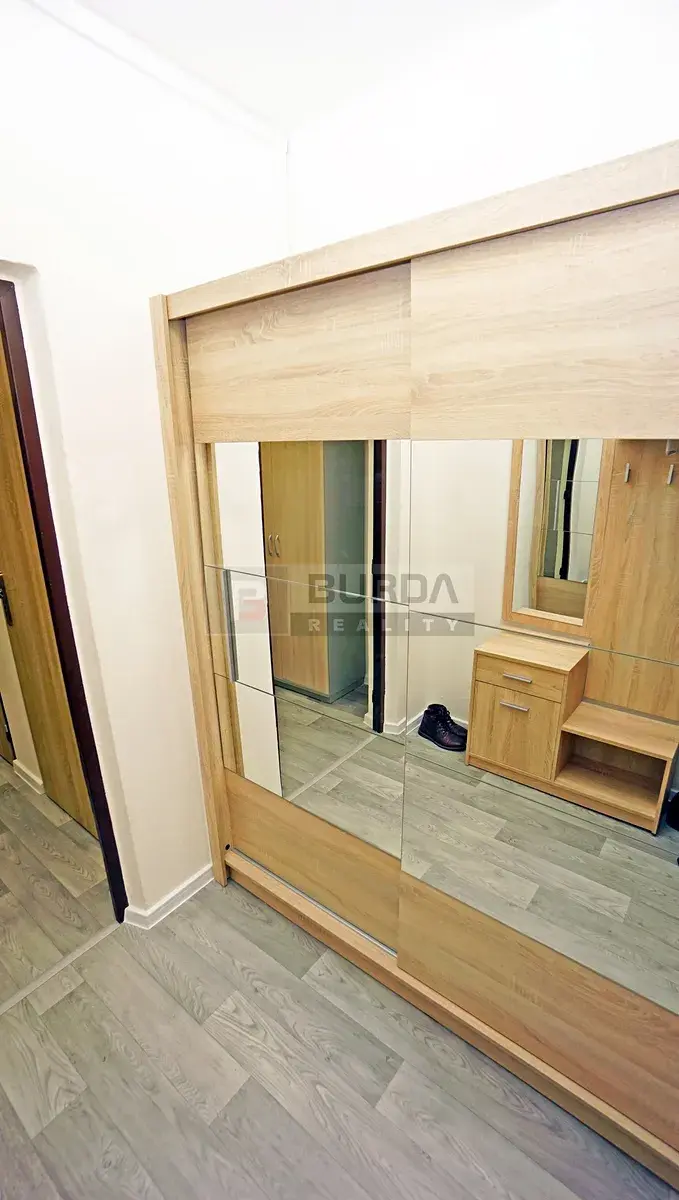 V bytě je kuchyňská linka v odstínu dub sonoma, s nerezovým dřezem a keramickým obkladem. Před kuchyňskou linkou je konzumní pult se dvěma židlemi. V pokoji je nové stropní svítidlo s dálkovým ovladačem.
