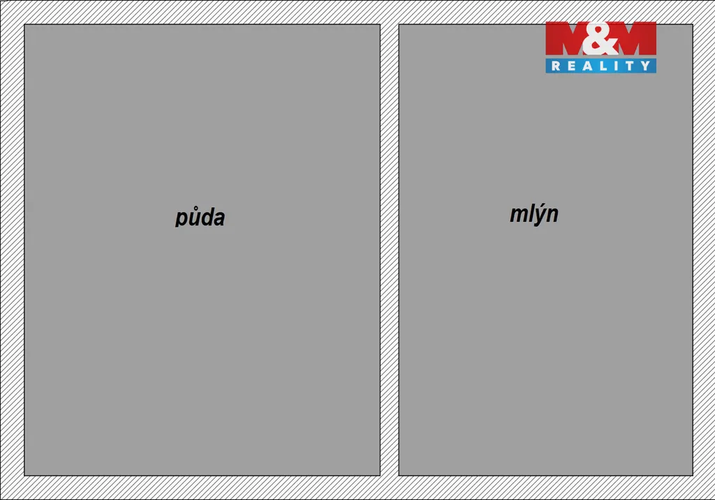 Tato samostatně stojící nemovitost s bohatou historií se rozkládá na třech nadzemních podlažích a nabízí 7 prostorných místností na užitné ploše 268 m². Mlýn je umístěn na okraji obce, což zajišťuje klid a soukromí, a je obklopen rozlehlými pozemky o celkové výměře 5776 m².