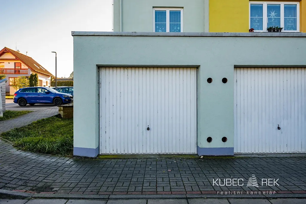 Za domem můžete využívat společnou zahradu, ideální pro různé aktivity, posezení nebo grilování. Parkování je možné pohodlně na obecním parkovišti před domem. Velkou výhodou je také možnost výhradního odkupu garáže o výměře 16 m², která se nachází hned u vstupu do domu.