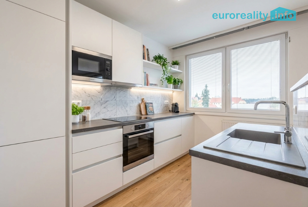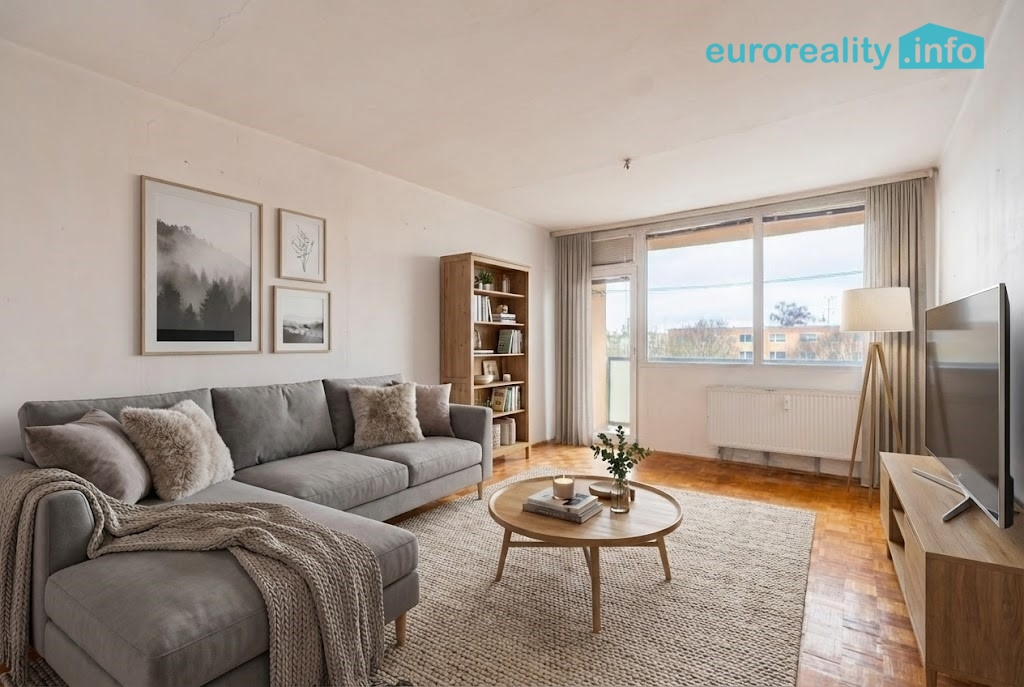Celková plocha bytu včetně lodžie činí 60 m². Dispozice nabízí praktické řešení – k bytu náleží lodžie, komora přímo v bytě a další výhodou je spíž umístěná v mezipatře. Bytový dům je zateplený, má plastová okna a působí velmi udržovaným a klidným dojmem.