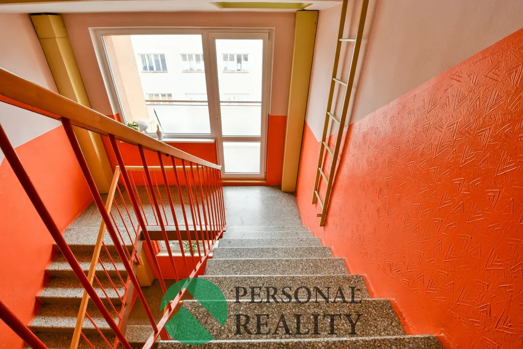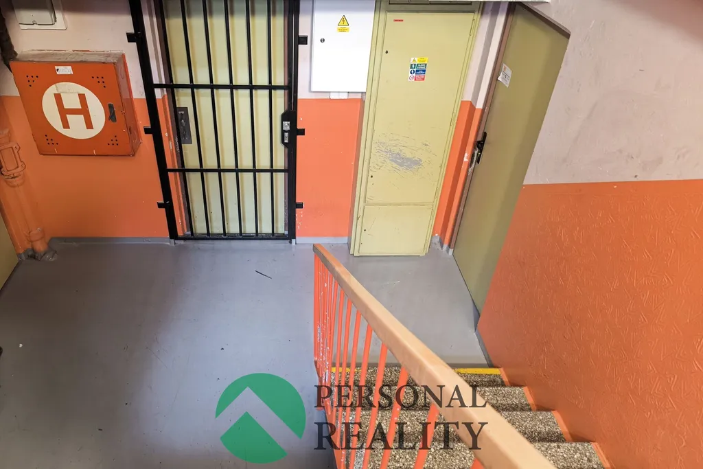 Byt je v udržovaném stavu, koupelna je v původním, zachovalém provedení. Součástí prodeje je kuchyňská linka a lednice. K bytu náleží také sklepní kóje. V mezipatře domu je možnost využití lodžie.