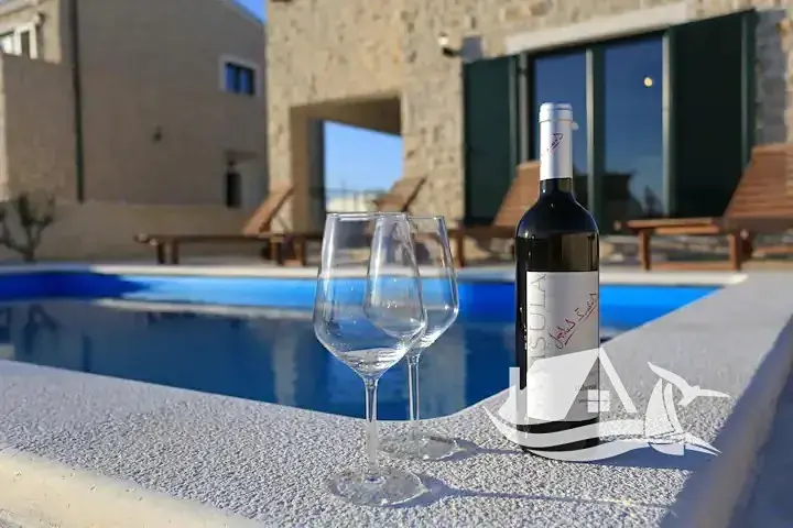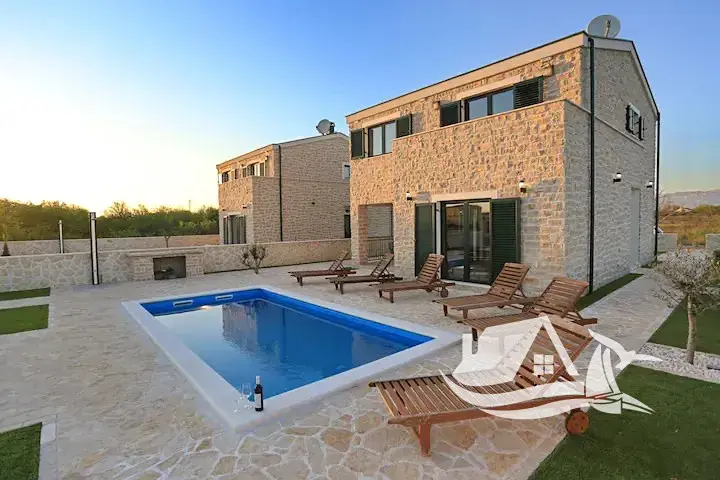 Nabízíme k prodeji plně zařízený dvoupodlažní dům s bazénem v Privlaka, pouhých 250 metrů od pláže. Tento moderní dům o celkové ploše 155 m² je situován na pozemku o rozloze 450 m² a byl postaven v roce 2016.