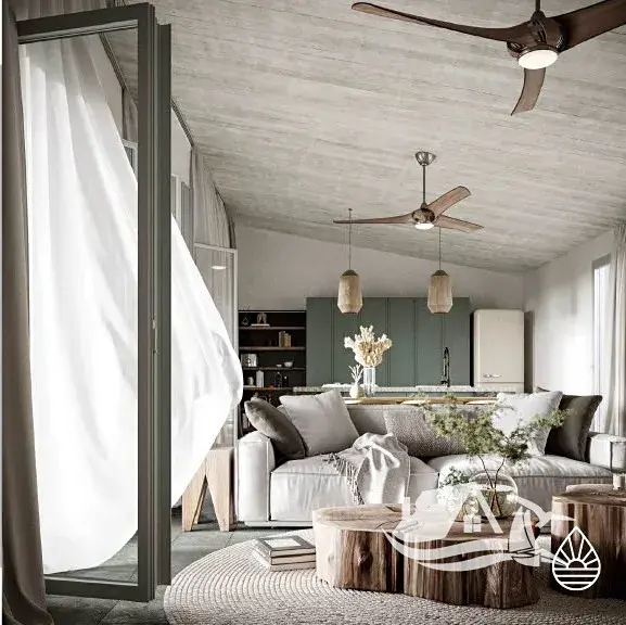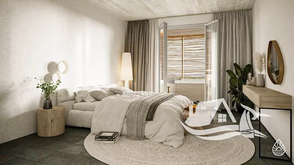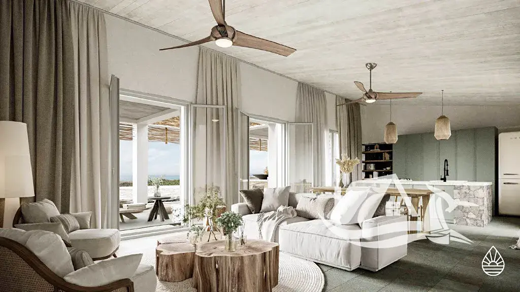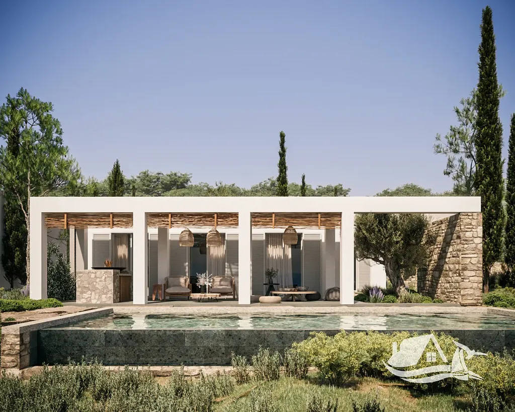 Tento bungalov se dvěma ložnicemi nabízí otevřený obývací a kuchyňský prostor s ručně vyrobenými prvky, prostornou krytou terasu s možností ohniště či grilu a jedinečný středomořský styl s využitím přírodních materiálů.
