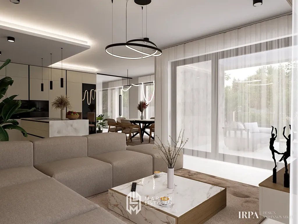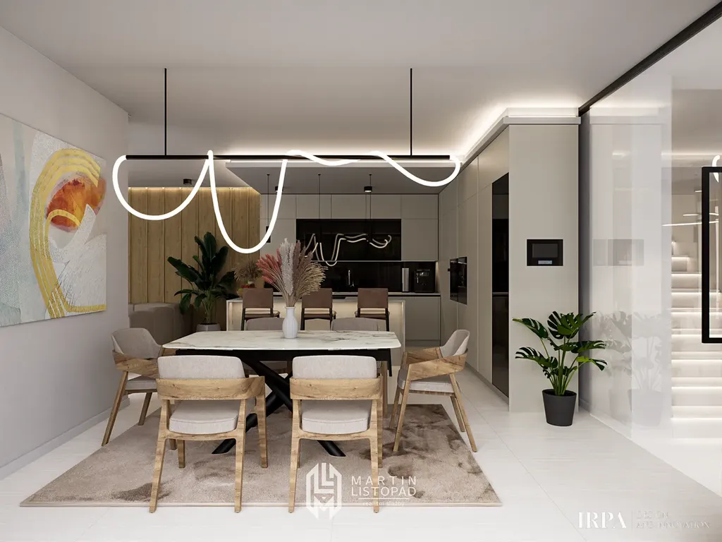 K nemovitosti je k dispozici kompletní návrh interiéru od renomovaného interiérového studia, doplněného o detailní specifikaci vybavení a materiálů (kniha produktů).
