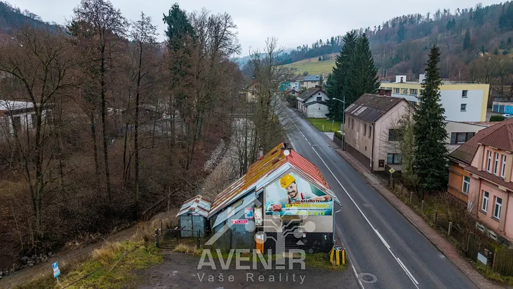 Nemovitost se nachází přímo na hlavní silnici a dává možnost zviditelnění vaší firmy nebo prodejny.