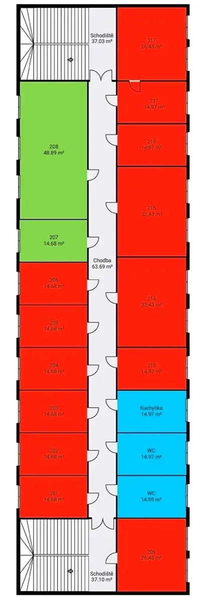 • Všechny kanceláře jsou situovány v 1. nadzemním podlaží