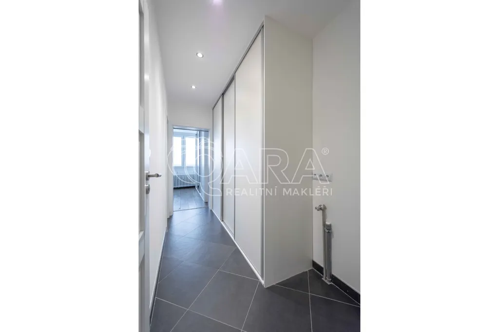 Dispozice bytu: chodba s vestavěnou skříní, šatna, obývací pokoj se vstupem na zasklenou lodžii, kuchyně s jídelnou, ložnice s vestavěnou skříní, dětský pokoj, koupelna s vanou, umyvadlem a oddělené WC. V bytě instalována klimatizační jednotka. K bytu patří sklepní kóje, možnost napojení na kabelovou televizi s internetem.