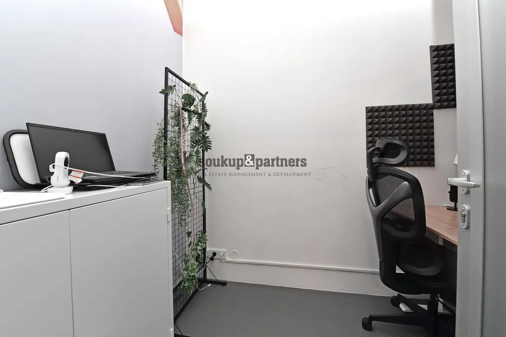 Kancelář 128 m2, která se nachází v 5. podlaží administrativní budovy v Praze 4 - Michle. Jedná se o soubor klimatizovaných kanceláří s centrálním vytápěním. Otevíratelná plastová okna jsou opatřena vnitřními žaluziemi, na podlaze koberec, datové rozvody. Možnost registrace sídla společnosti a pronájmu 3 parkovacích stání. Pro nájemce je přístup do budovy 24/7, na patře společná kuchyňka a toalety. Budova po rekonstrukci - 2x nový výtah, zateplená fasáda, platová okna, napojení na centrální pult ochrany, úpravy společných prostor. Výborná dopravní dostupnost - 10 min. MHD Metro C, zastávka Kačerov. Volné dle dohody. Pro více informací volejte manažera nabídky.