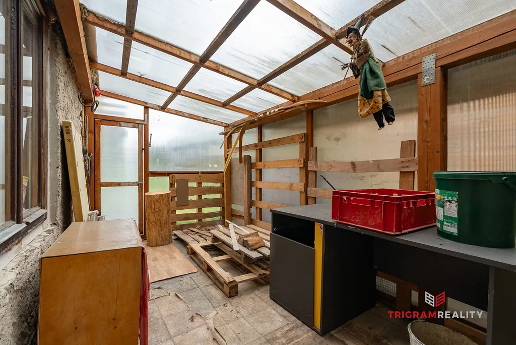 K domu náleží pozemek o výměře 527 m² s krytým posezením a krbem. K dispozici je také prostorné podkroví s možností dalšího využití.