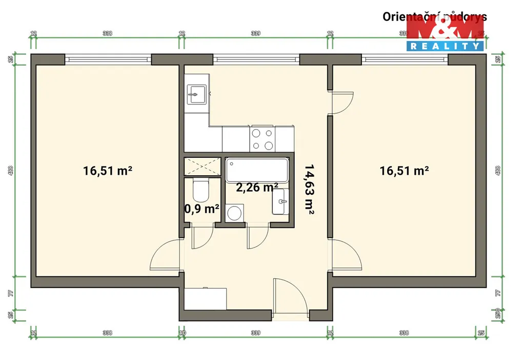 Byt prošel celkovou rekonstrukcí a je připraven k okamžitému nastěhování bez nutnosti dalších investic. Dispozice zahrnuje obývací pokoj, ložnici, samostatnou kuchyň, koupelnu, WC a chodbu.