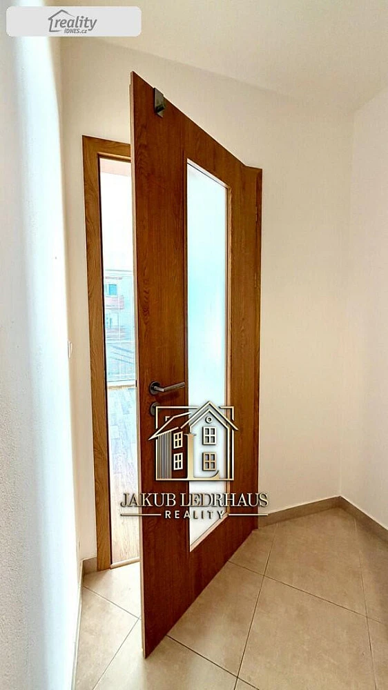 Byt se nachází ve 3. NP moderního domu s výtahem. Dispozice zahrnuje předsíň, koupelnu se sprchovým koutem, WC a připojením na pračku a sušičku, komoru a obývací pokoj s plně vybavenou kuchyňskou linkou (sklokeramická varná deska, trouba, mikrovlnná trouba, myčka). Z obývacího pokoje je vstup na prostorný balkon.