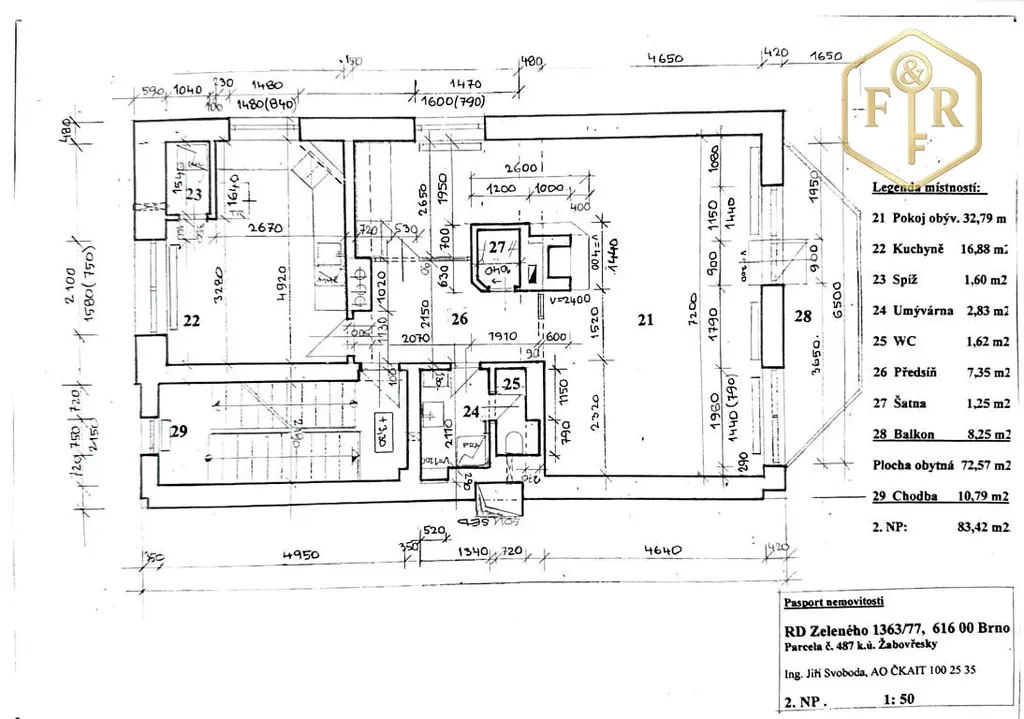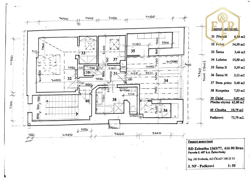 4+1 ve 2.NP a v podkroví (celkem 72,57m² + 62m²)